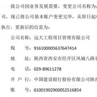 我公司因業(yè)務(wù)發(fā)展需要,變更公司名稱為:遠(yuǎn)大工程項(xiàng)目管理有限公司,現(xiàn)已將公司基本賬戶變更完畢,從即日起收款及開票信息按最新內(nèi)...